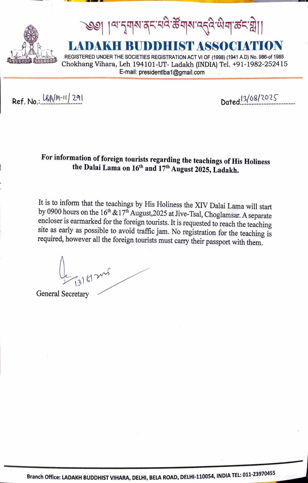 TEACHING DATES OF HIS HOLINESS THE DALAI LAMA 2025