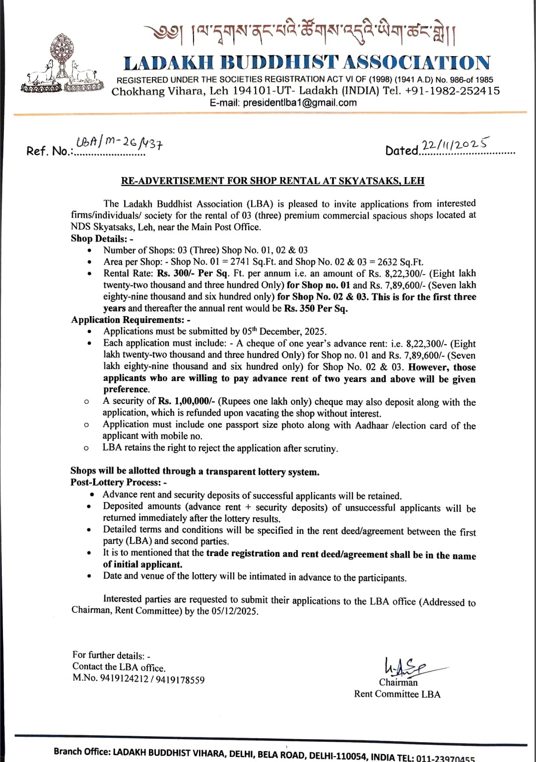 Lottery details for LBA shops at NDS Skyatsaks