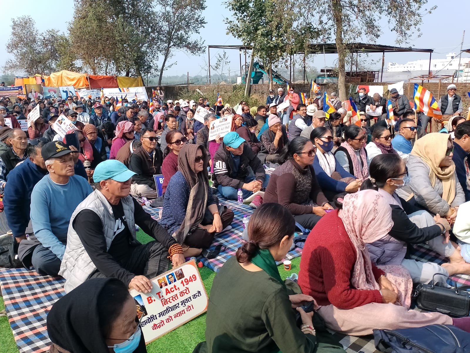 On the initiative of the President Ladakh Buddhist Association and All Ladakh Gonpa Association, a one-day sit-in protest (Dharna) was organized at Bodh Gaya today on 13th Jan 2026 with the demand to repeal the BTMC act of 1949 and to handover the entire management of the Mahabodhi Mahavihara temple to the Buddhist. A large number of laymen, laywomen and venerable monks/nuns from Ladakh participated in the sit-in protest Dharna.